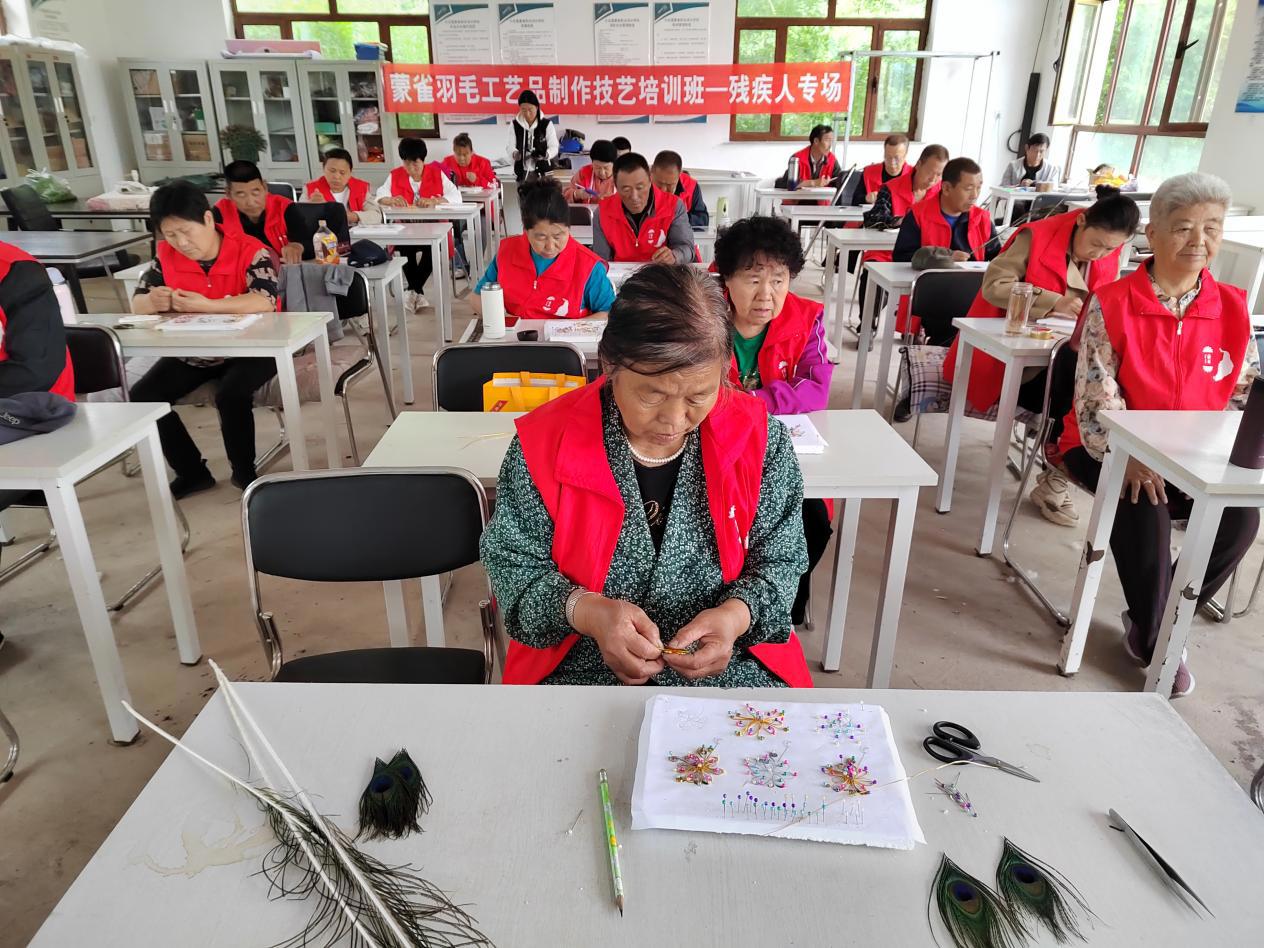 培训班的举办为残疾人学员们带来了实实在在的就业机会。在乌兰浩特市蒙雀养殖合作社的积极推动下,有10名优秀学员成功入驻工作室,实现了稳定就业。他们凭借在培训班中学到的技能,在工作室中发挥着重要作用,不仅为合作社带来了经济效益,也为自己赢得了尊重与认可。此外,还有23名学员通过灵活就业的方式,利用业余时间制作孔雀羽毛工艺品,并通过线上线下的销售渠道实现增收。这些工艺品以其独特的创意与精湛的工艺赢得了市场的青睐,为学员们带来了可观的经济收益,有效改善了他们的生活条件。