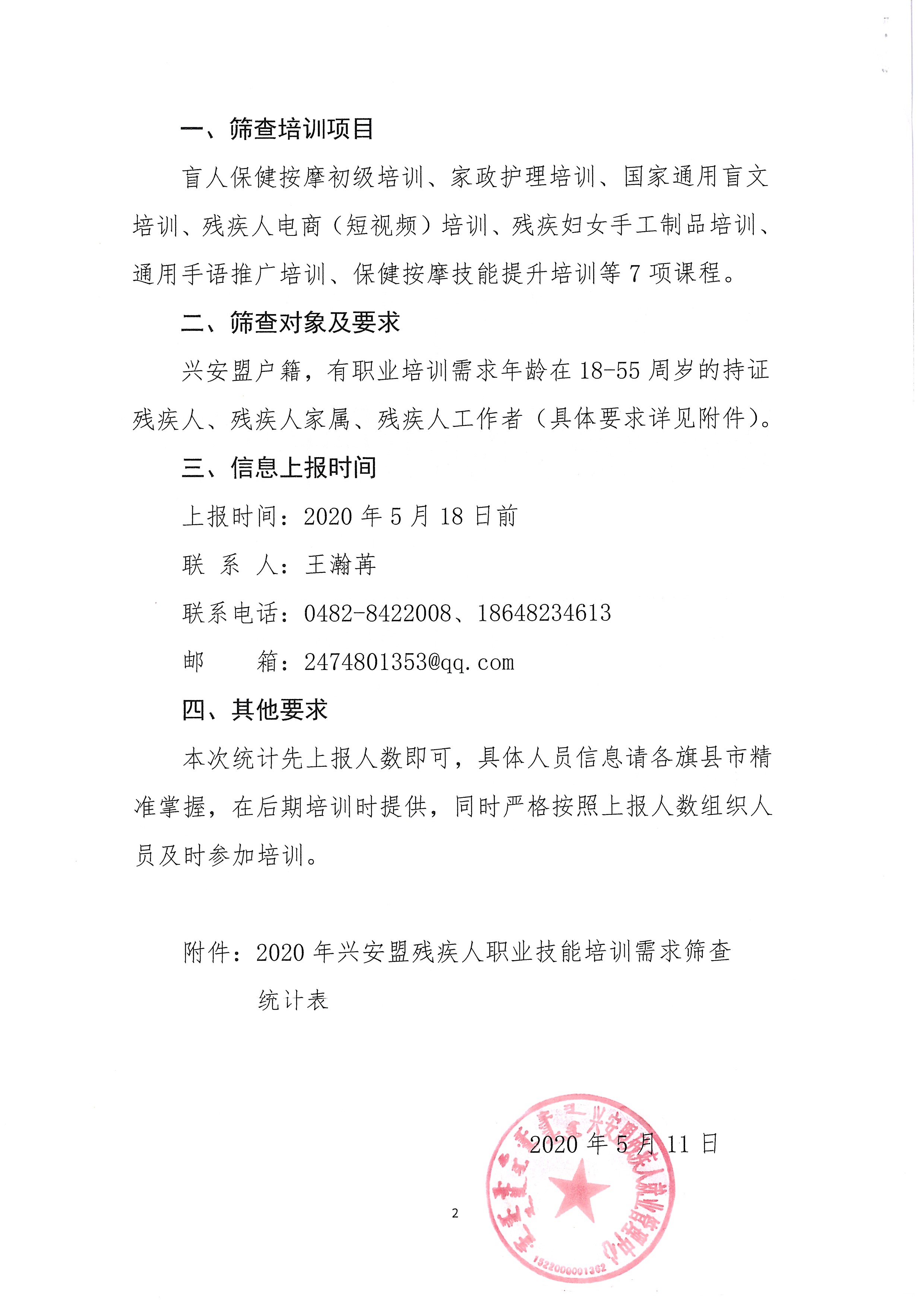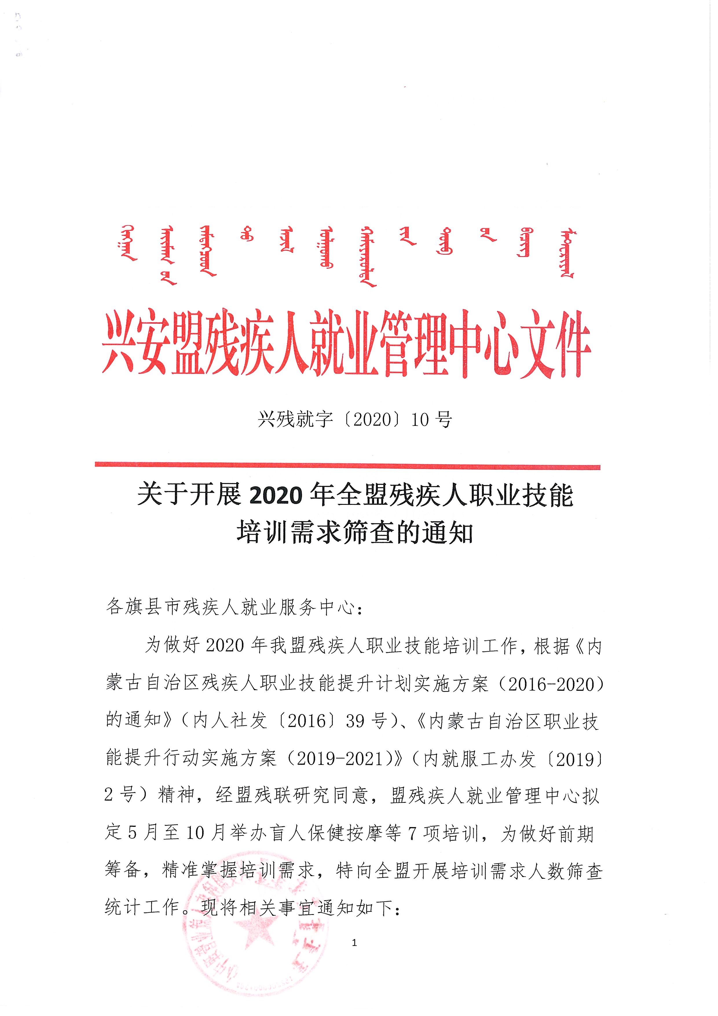 关于开展2020年全盟残疾人职业技能培训需求筛查的通知